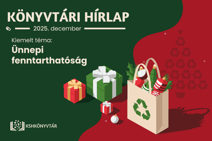Kiemelt témánk: Ünnepi fenntarthatóságA Könyvtári Hírlap 2025. decemberi száma az ünnepekkel kapcsolatos fenntarthatósági problémákkal és kihívásokkal foglalkozik. Szakkönyvajánlóink között található a csomagolástechnika terén elért legújabb fejlesztéseket bemutató kötet, a figyelmet a környezettudatosságra irányító könyv, illetve könnyen és olcsón megvalósítható karácsonyi dekoráció-ötleteket bemutató mű is. Szakcikkajánlóink – többek között – a kereskedelem és a fenntarthatóság viszonyával, a mikroműanyagok környezetkárosító hatásaival, valamint az ünnepekkel kapcsolatos környezeti terhelés mérési lehetőségeivel foglalkoznak. Decemberi programkínálatunk keretében kézműves foglalkozásra, könyv- és beszélgetőklubba is invitáljuk az érdeklődőket.