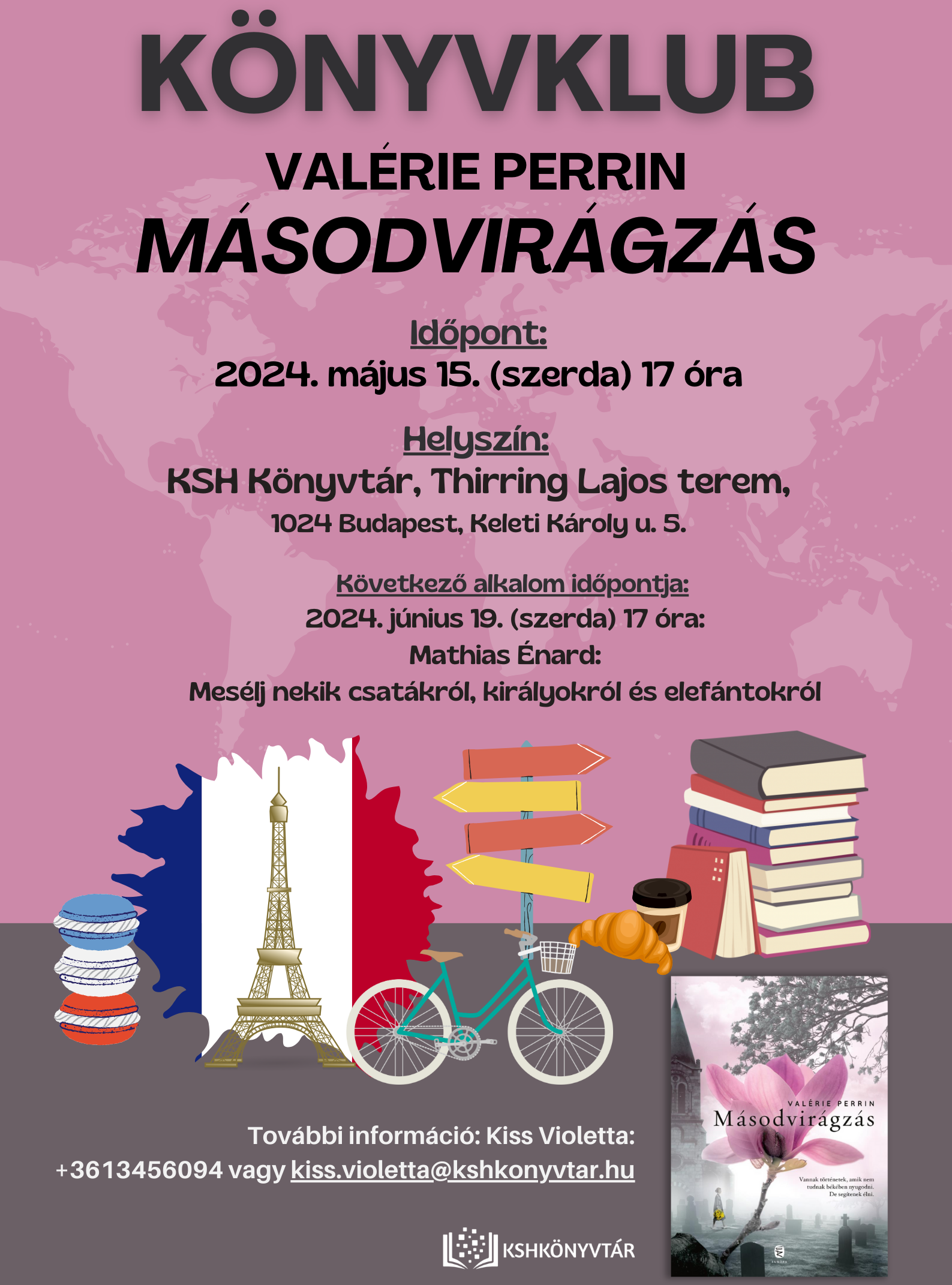 2024. május 15. (szerda) 17 órától sok szeretettel vár minden érdeklődőt a KSH Könyvtár könyvklubja, ahol ezúttal Franciaország a téma! Az est során Valérie Perrin: Másodvirágzás című művét dolgozzák fel.