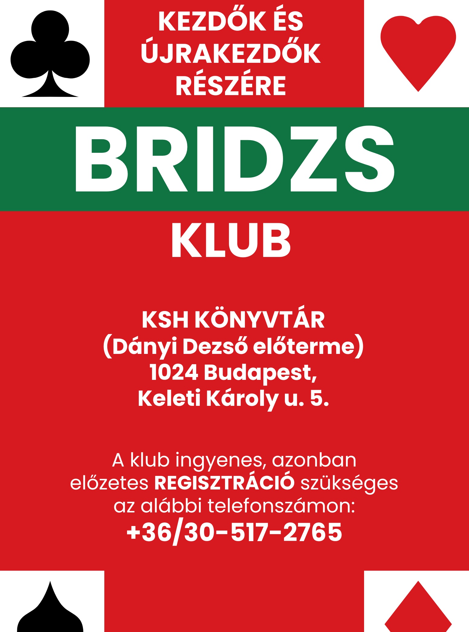 Ősszel induló bridzs klub várja a kedves érdeklődőket!