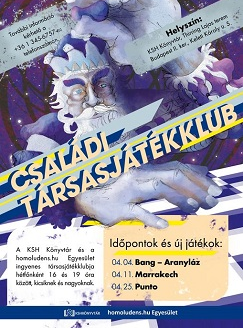 A KSH Könyvtár és a homolundens.hu Egyesület ingyenes társasjáték klubja hétfőnként 16 és 19 óra között, kicsiknek és nagyoknak.