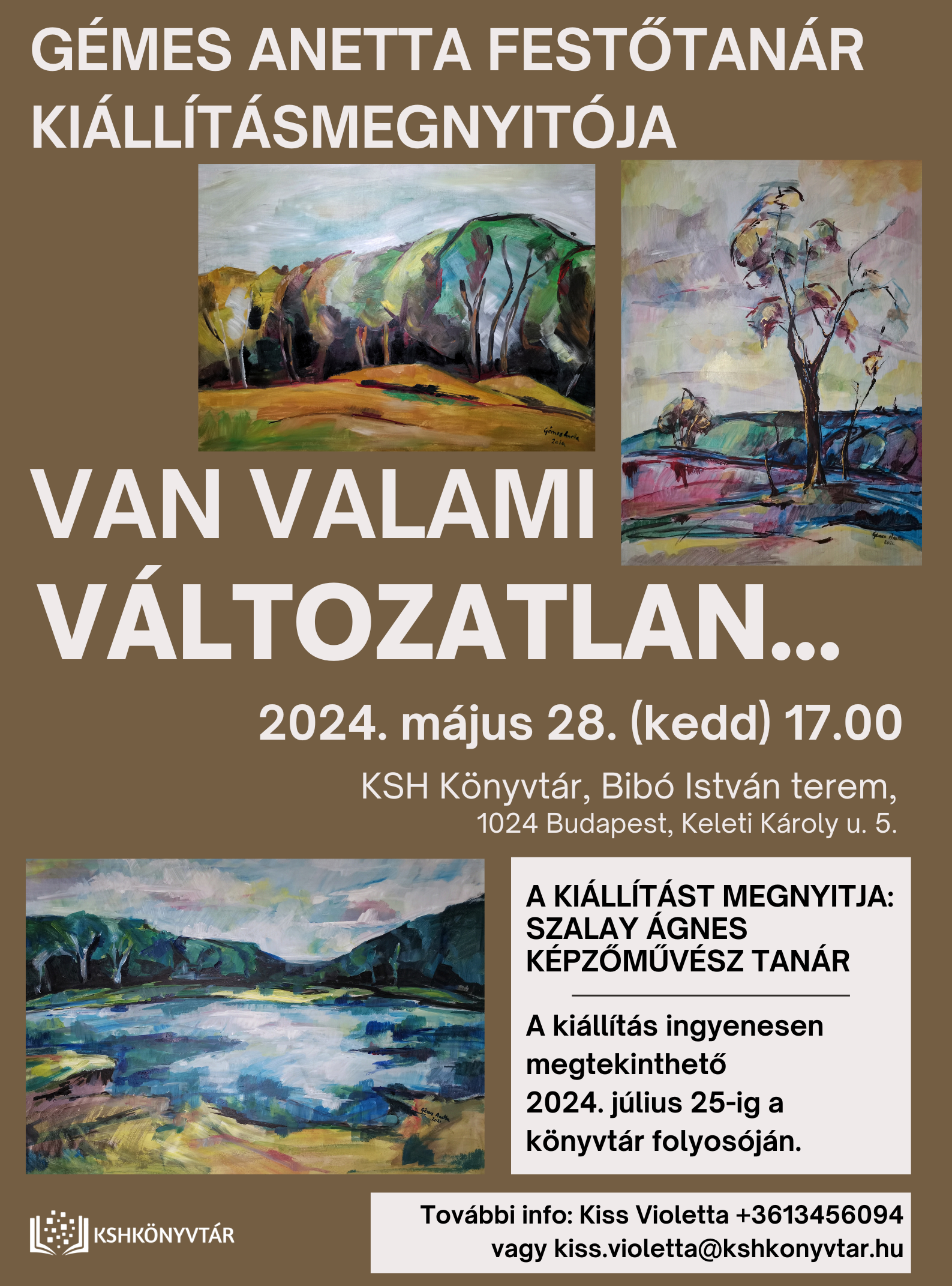 2024. május 28-án (kedd) 17 órától sok szeretettel várjuk az érdeklődőket Gémes Anetta festőtanár Van valami változatlan... című kiállításának megnyitóján.