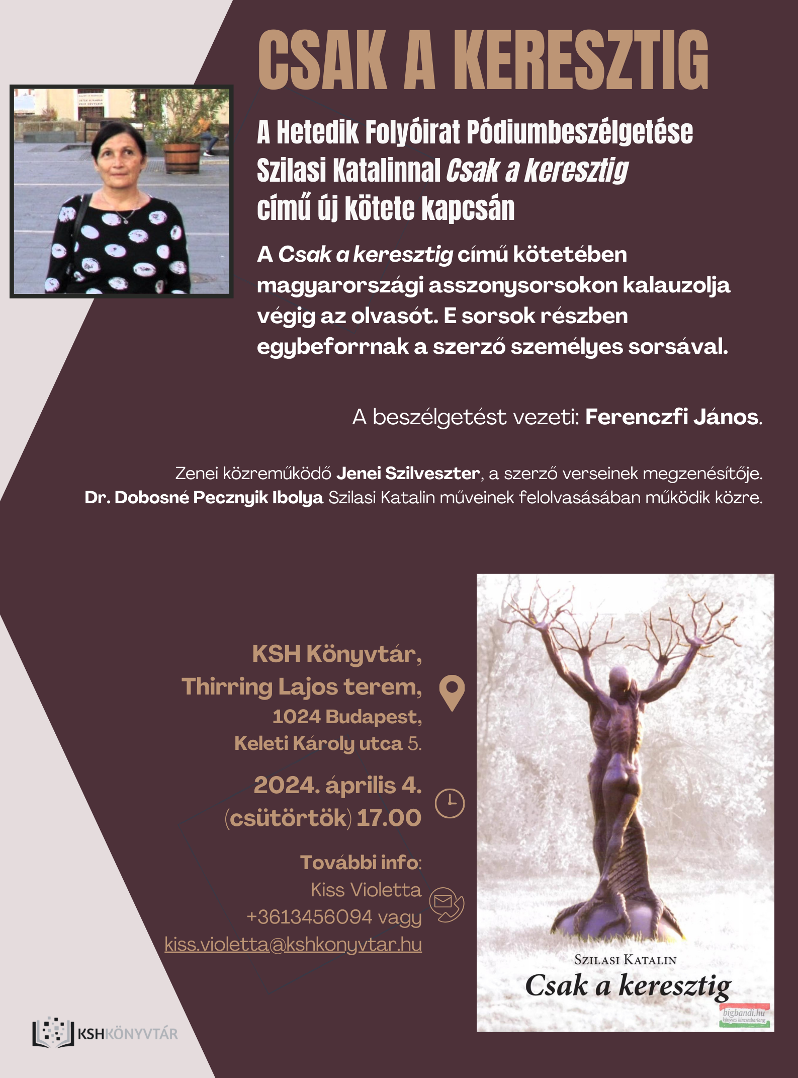 TovábbCsak a keresztig – A Hetedik Folyóirat pódiumbeszélgetése Szilasi Katalinnal Csak a keresztig című új kötete kapcsán