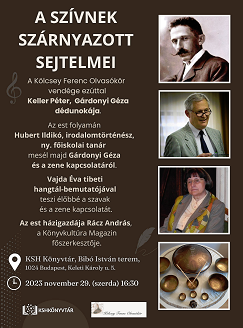 2023. november 29-én (szerda) 16.30-tól a Kölcsey Ferenc Olvasókör A szívnek szárnyazott sejtelmei című estjére várja szeretettel az érdeklődőket, melynek vendége Keller Péter, Gárdonyi Géza dédunokája lesz.