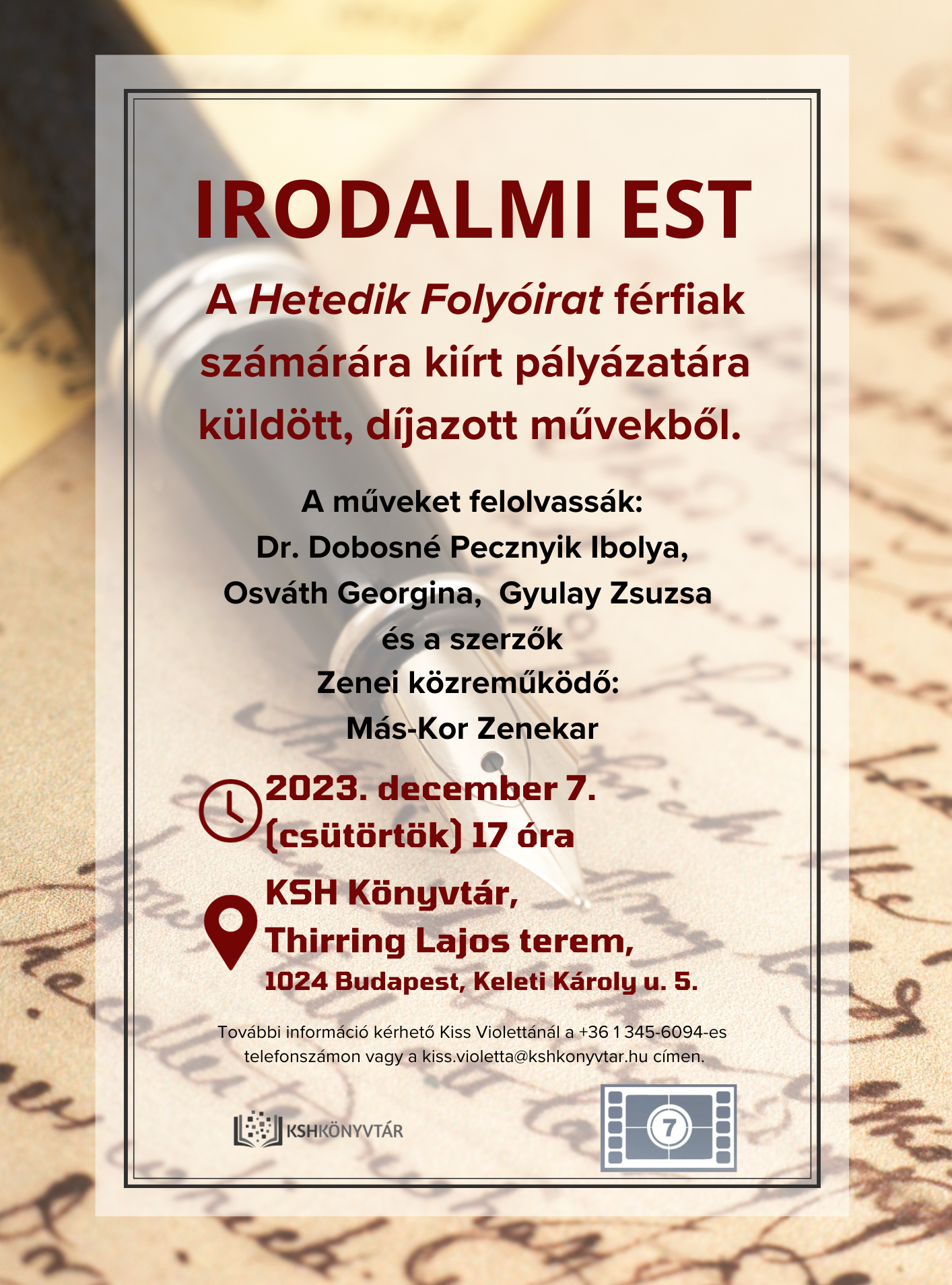 2023. december 12-én (kedd) 17 órától egy irodalmi és gasztronómiai kalandozásra várjuk az érdeklődőket Cserna-Szabó András íróval.