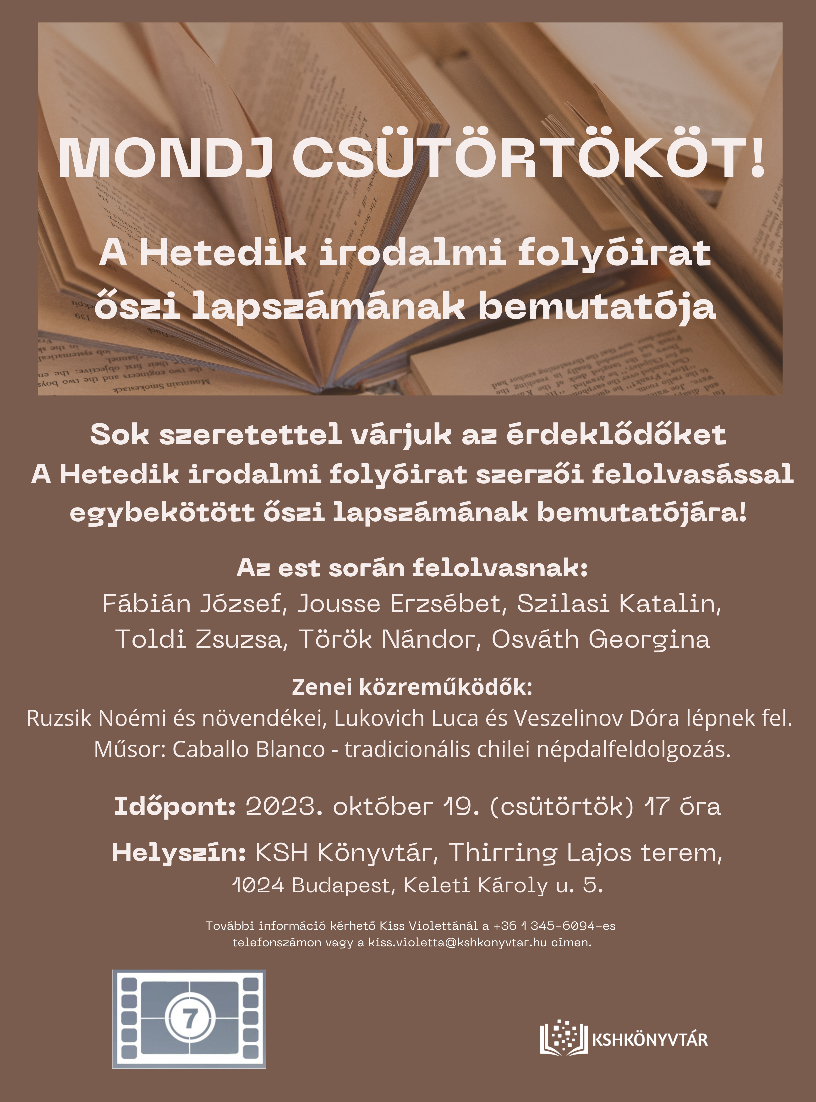 Sok szeretettel várunk minden érdeklődőt A Hetedik irodalmi folyóirat felolvasóestjére!