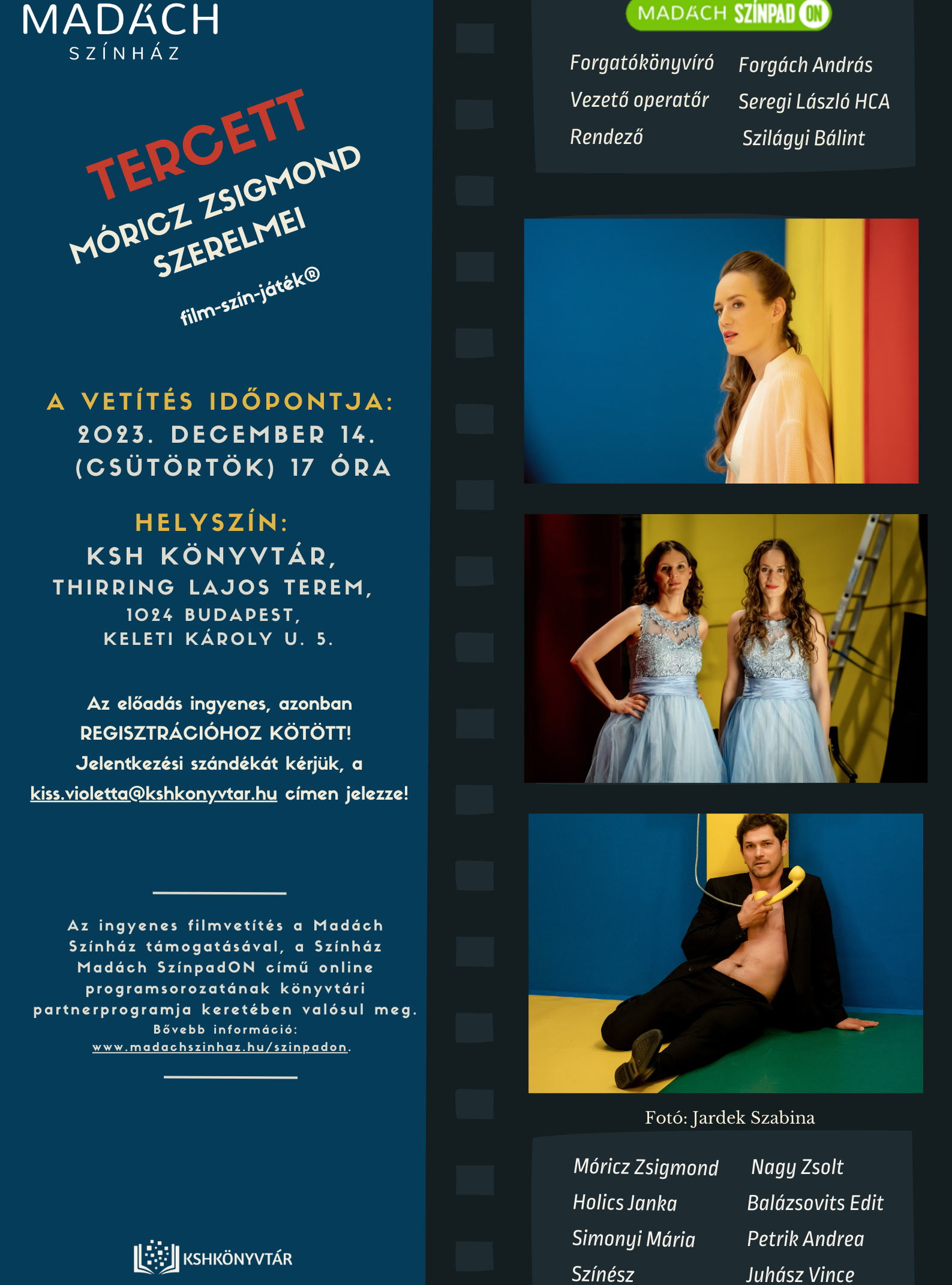 Szeretettel várunk minden színházkedvelőt és érdeklődőt 2023.december 14-én 17 órától a Madách Színház Írók-Sorsok-Szerelmek című online irodalmi programsorozatának Tercett – Móricz Zsigmond szerelmei című film-szín-játékára.