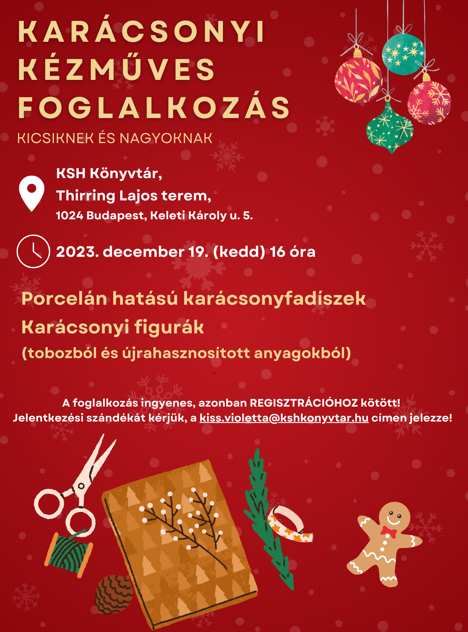 Várjuk a kreatívkodni vágyó kicsiket és nagyokat karácsonyi kézműves foglalkozásunkra.