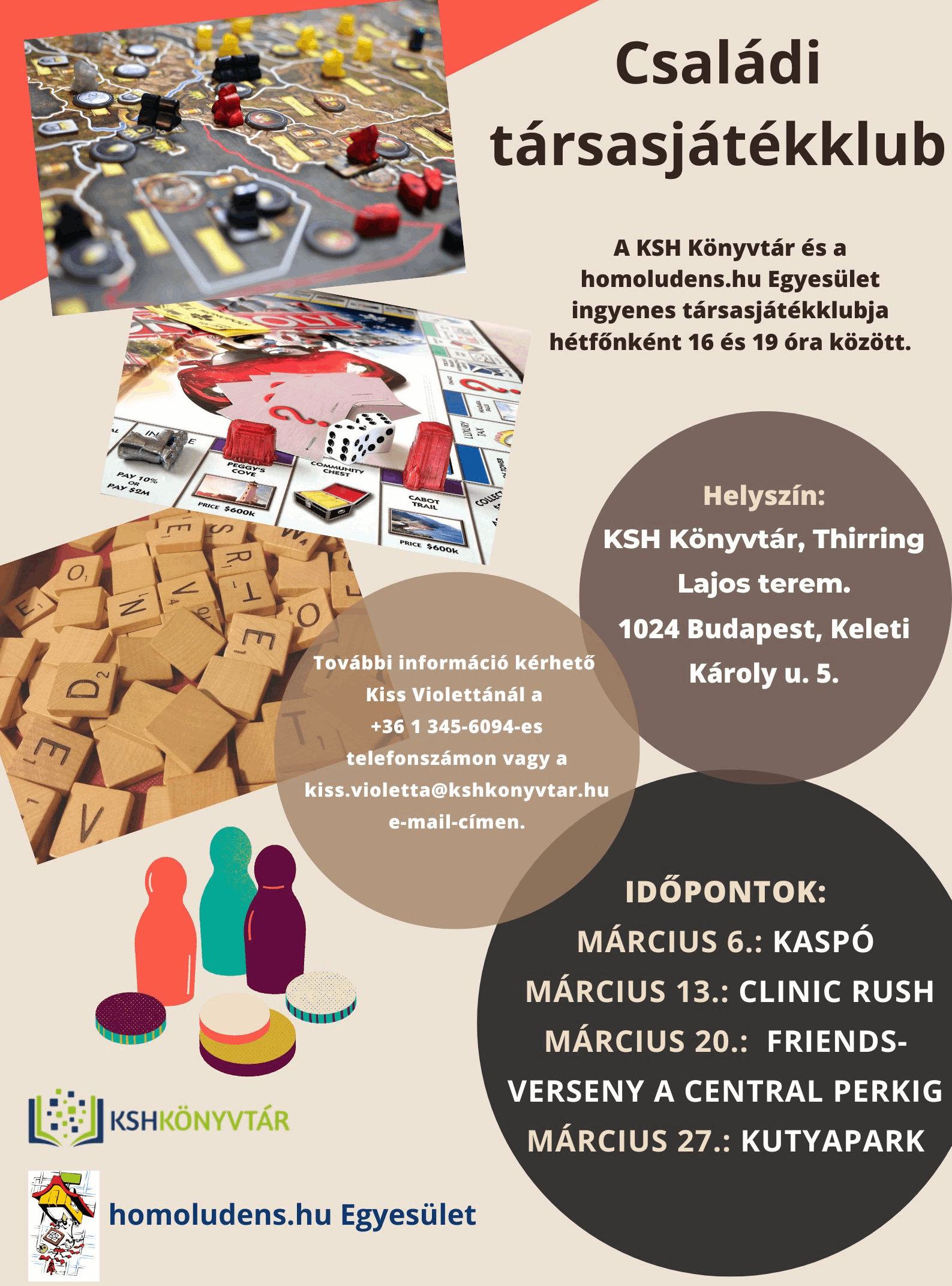 Családi társasjátékklubunk márciusban is sok szeretettel várja a kikapcsolódni vágyókat hétfőnként 16.00 és 19.00 óra között!