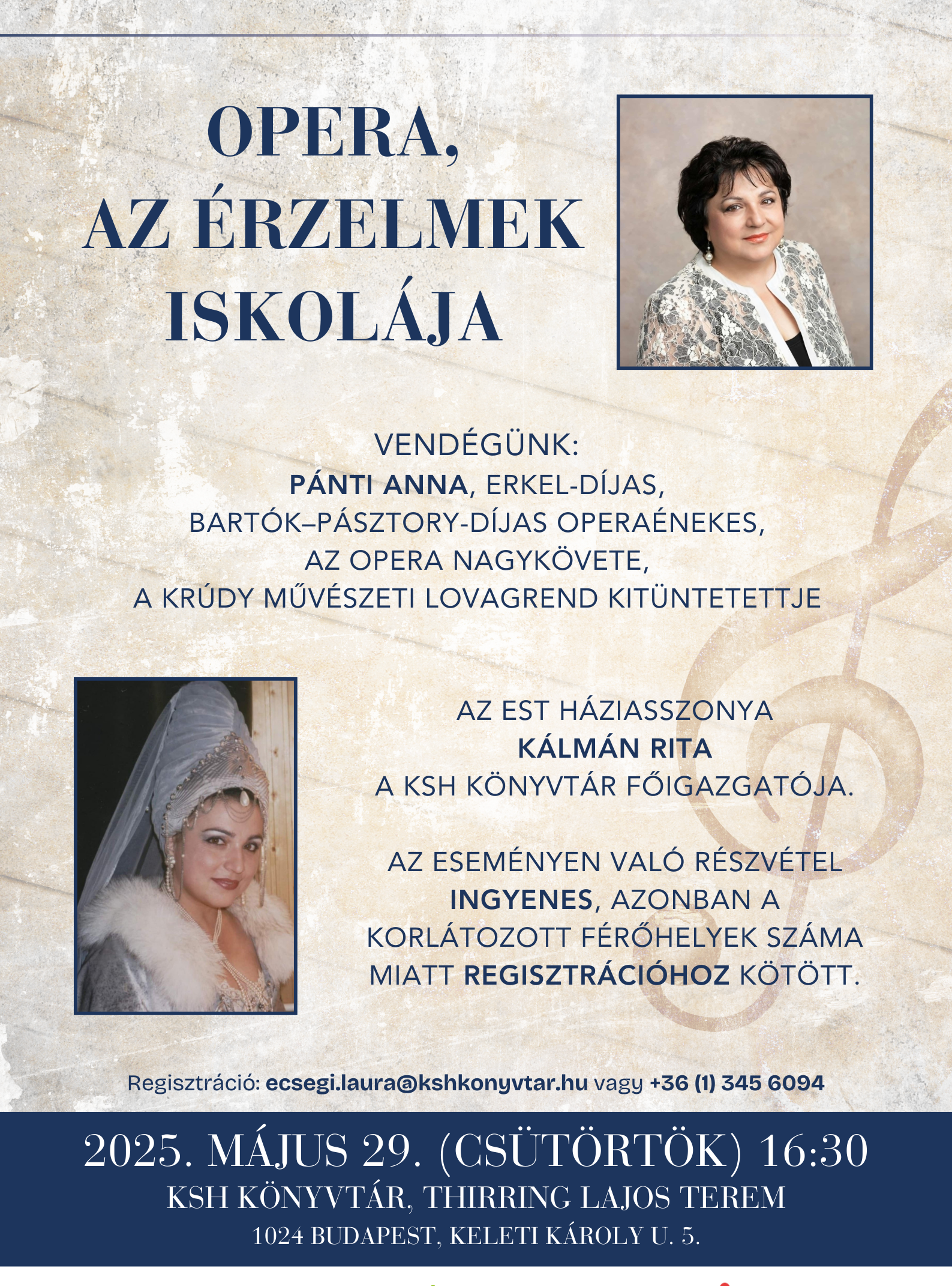 2025. május 29-én 16:30-kor a Kölcsey Ferenc Olvasókör szervezésében Pánti Anna, Erkel-díjas, Bartók-Pásztory-díjas operaénekes, az Opera nagykövete, a Krúdy Művészeti Lovagrend kitüntetettje érkezik hozzánk.
