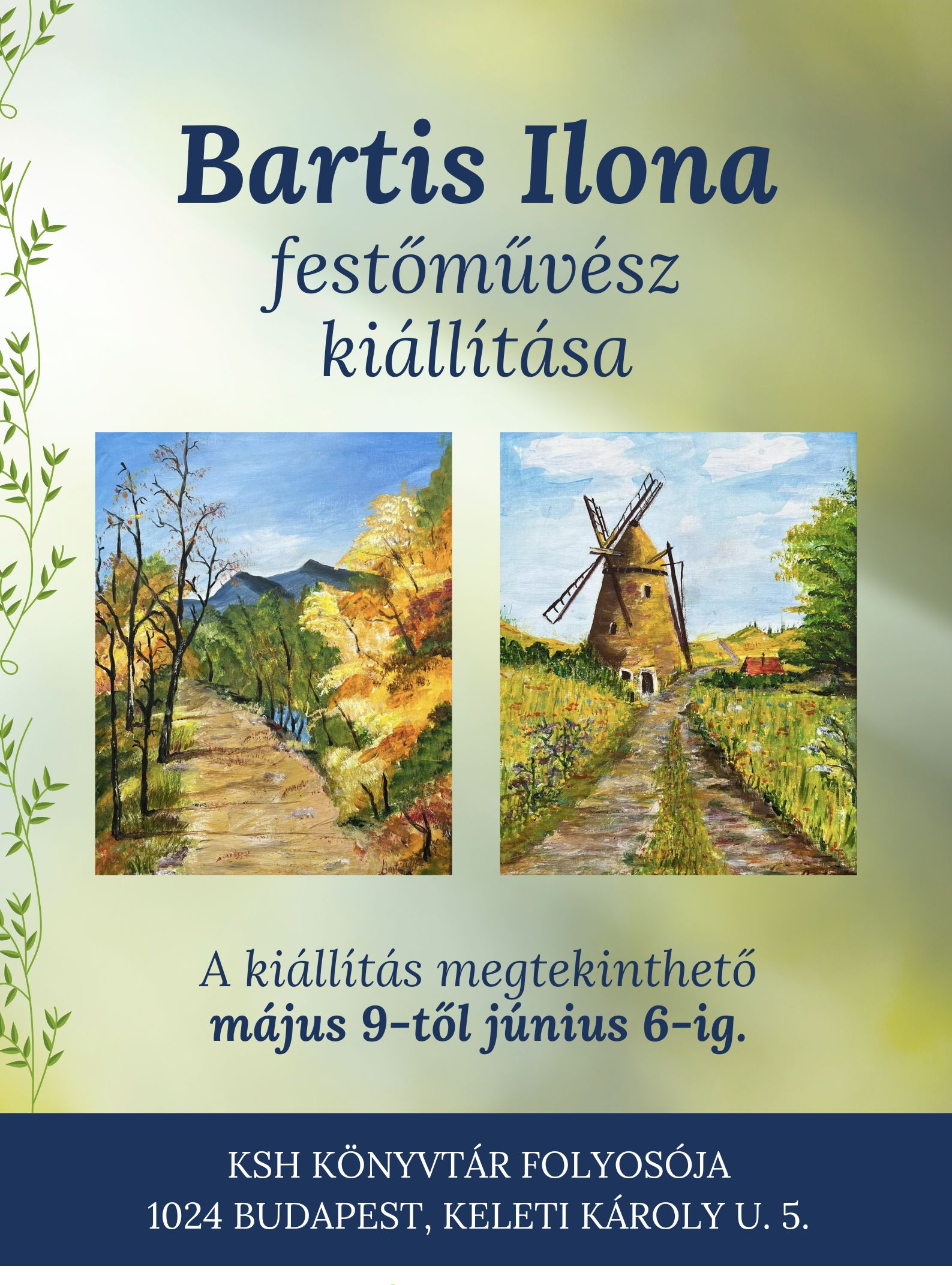 A KSH Könyvtár szeretettel várja a kedves érdeklődőket Bartis Ilona festőművész kiállítására a Könyvtár folyosóján!