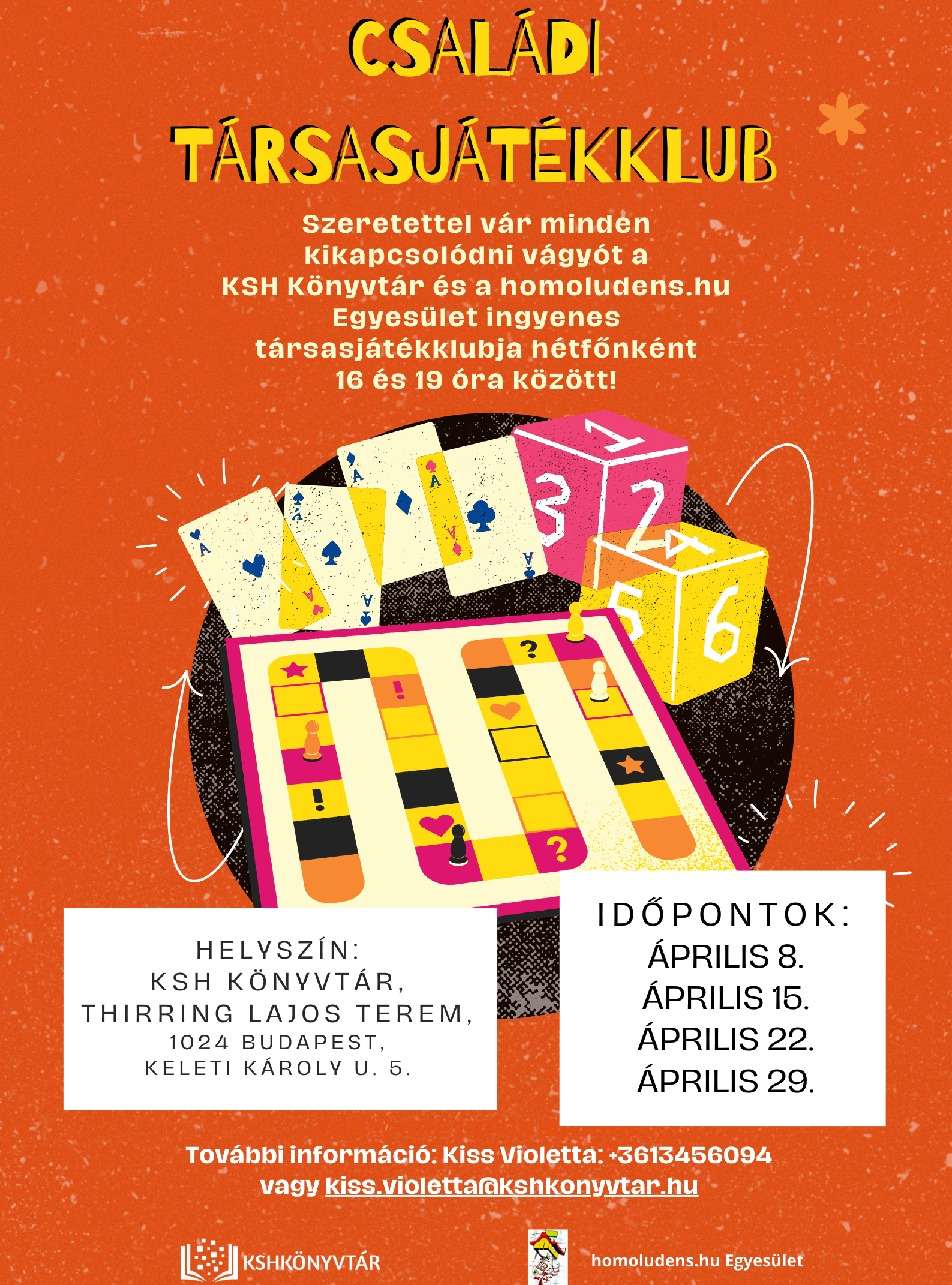 Májusban is szeretettel várja az érdeklődő kicsiket és nagyokat a KSH Könyvtár és a homoludens.hu Egyesület közös rendezésű családi társasjátékklubja hétfőnként 16 és 19 óra között.