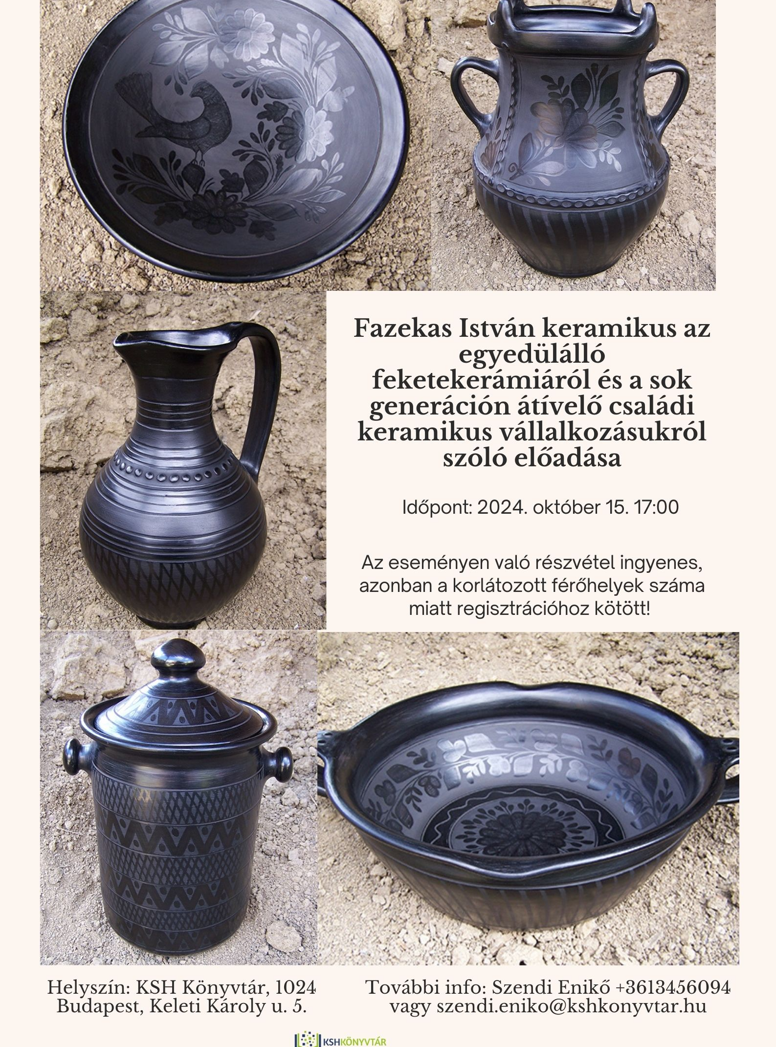Előadást tart Fazekas István keramikus az egyedülálló feketekerámiáról és a sok generáción átívelő családi keramikus vállalkozásukról.